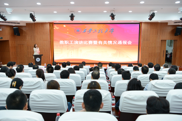 2018年5月 21日,我校在临潼校区图书馆一楼报告厅举办 “中国梦·劳动美”教职工演讲决赛暨学校有关情况通报会。校长高岭、校党委副书记赵小峰出席并讲话,我校教代会、工会委员会部分代表、党外人士、各校属单位科级以上干部及工作人员约160人与会。