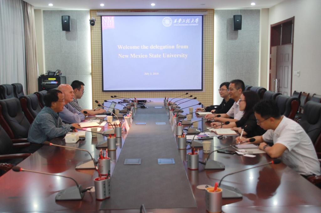 7月3日,美国新墨西哥州立大学副教务长罗德·迈克谢利(Rod McSheey)、数学系教授田建军、校中国学生会主席刘捷飞一行来访我校,副校长樊增禄在临潼校区图书馆一层会议室同外宾进行了会谈,国际合作与交流处、理学院等部门负责人参加了会谈。樊增禄首先对客人一行来访表示欢迎,并简要介绍了我校的办学历程和国际化办学理念。他谈到,学校坚持开放式办学,与国(境)外50余所高校建立了合作关系,在学生培养、教师互访、科研合...