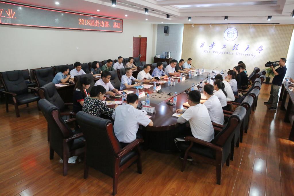 6月26日下午,西安工程大学2018届毕业生座谈会在临潼校区A座一楼会议室举行。校长高岭、校党委副书记赵小峰、副校长朱永民,党政办公室、研究生工作部、学生工作部(处)、教务处、招生就业工作处、校团委、实验室管理处、后勤管理处、保卫处、图书馆、工程训练中心等部门负责人与来自各学院的25名本、专科毕业生和毕业研究生进行了座谈,座谈会由校党委副书记赵小峰主持。