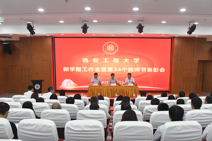 2018年9月10日下午,新学期伊始,在第34个教师节来临之际,我校在临潼校区图书馆一楼报告厅隆重举行新学期工作会暨第34个教师节表彰会。大会对上半年的工作进行回顾,对下半年重点工作安排和部署;对教学科研、管理服务工作中涌现出的省级、校级先进集体和优秀教师进行表彰,并号召全校教职员工向榜样学习。