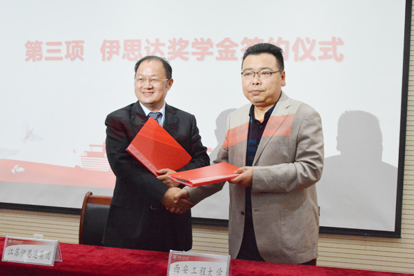 2018年9月27日下午,纺织科学与工程学院在金花校区姚穆报告厅举办了“西安工程大学校庆系列活动之——西安工程大学伊思达奖学金签约仪式暨优秀企业家学术报告会”。