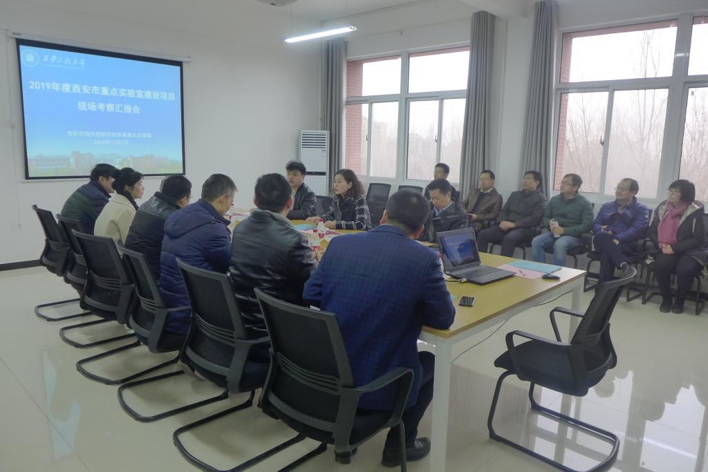 2018年12月7日上午、12月11日下午西安市科技局科技成果与技术市场处处长解中、调研员成树林、副主任科员吴寅一行分别在我校临潼校区和金花校区对2019年度西安市重点实验室申报建设项目“西安市现代智能纺织装备重点实验室”和“西安市先进纤维材料及制品重点实验室”进行实地考察。副校长李鹏飞、科技处副处长朱耀麟、副处长王志刚、重点实验室相关科研人员及科技处相关工作人员参加了会议。李鹏飞首先代表学校对解中一行莅临学...