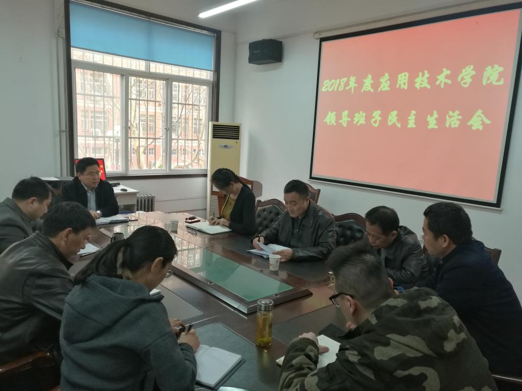 根据《中共西安工程大学委员会关于各院(部)级党组织开好2018年度民主生活会的通知》要求,2019年3月22日下午,应用技术学院党总支在金花校区学院会议室召开2018年度学院领导班子民主生活会。学院分管校领导校纪委书记井浩、校第二督导组组长邢瑞芳同志参加了会议,应用技术学院党政领导班子全体成员、党总支委员会委员参加会议,办公室负责人列席会议。民主生活会由应用技术学院党总支书记王宇主持。王宇首先通报了学院召开民...