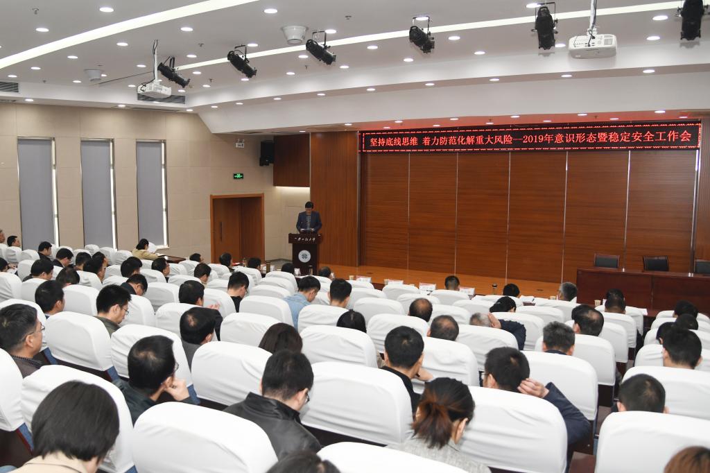 3月29日,我校在临潼校区图书馆二楼报告厅召开2019年意识形态暨稳定安全工作会,贯彻落实中省关于意识形态和稳定安全工作的重要精神,对2018年意识形态、稳定安全及综合治理工作进行总结,并对2019年工作进行部署。会议的主题是坚持底线思维,防范化解校园重大风险。校党委书记刘江南在讲话中强调,要深化思想认识,强化底线思维,增强做好防范化解重大风险工作的坚定性和自觉性,切实扛起责任,勇于担当作为,细化各项措施,着...