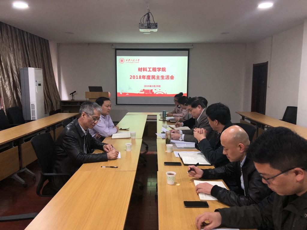 按照《中共西安工程大学委员会关于各院(部)级党组织开好2018年度民主生活会的通知》要求,2019年3月29日下午,材料工程学院党支部召开2018年度领导班子民主生活会。副校长樊增禄、组织部副部长刘俊富出席会议,材料工程学院党政领导班子成员、学院分工会主席、办公室主任列席会议。民主生活会由学院党支部书记张茂林主持。会上,张茂林代表领导班子对2018年度民主生活会做了检查对照,他紧密围绕“四个聚焦”,认真查找班子...