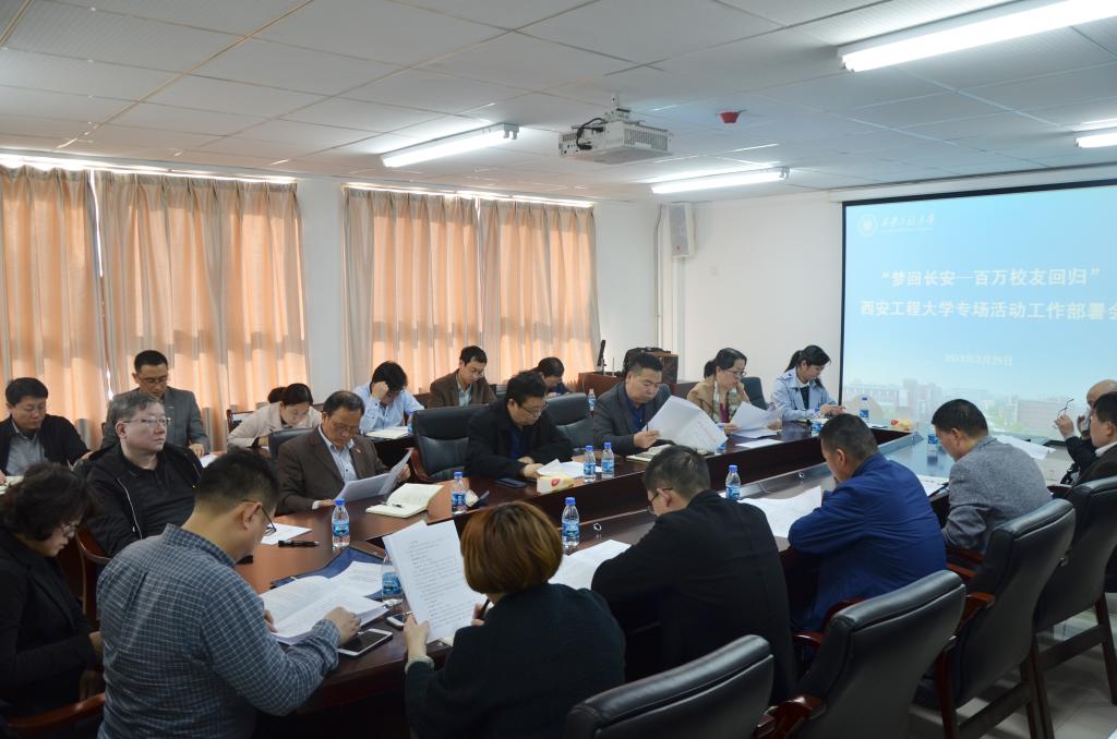 3月29日,学校在金花校区召开“梦回长安—百万校友回归”西安工程大学专场活动工作部署会,校党委副书记赵小峰、党委副书记朱君强、副校长李鹏飞,党政办、发展规划处、国内合作与校友工作处、科技处、科技成果转化中心、人事处、宣传部、财务处、国有资产管理处、国际合作与交流处、招生就业工作处、学生处(学工部)、研究生院(研工部)、校团委、时尚文化创意产业园、协同创新中心、工程训练中心、后勤管理处、保卫处、服装...