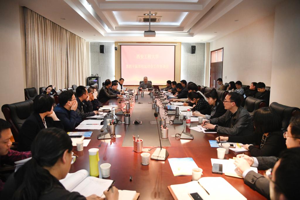 2019年4月16日下午,我校在临潼校区图书馆一楼会议室召开第40届田径运动会工作部署会,校体育运动委员会主任、副校长樊增禄,党政办、宣传部、工会、学工部(处)、保卫处、后勤处、校医院、校团委、体育部等相关部门负责人,各教学单位学生工作主管、学院领队、工会各分会领队及学生代表共计50余人参加了会议,会议由樊增禄主持。会上,薛海红针对学校《第40届田径运动会的秩序册》和《关于成立西安工程大学第40届田径运动会组...