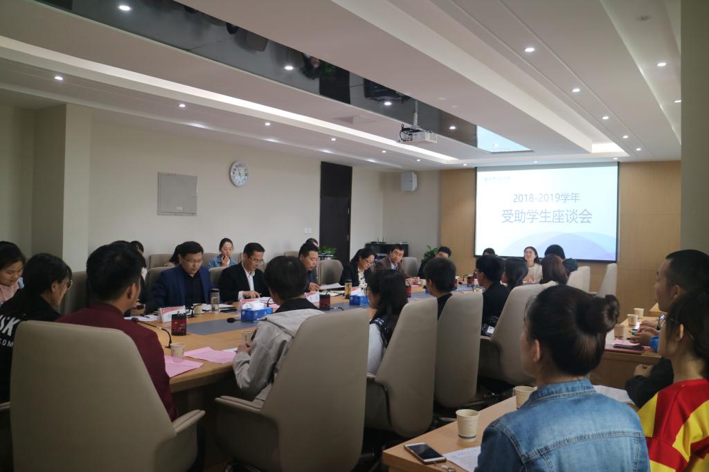 5月8日下午,我校在临潼校区行政楼第三会议室组织召开2018-2019学年受助学生座谈会。校党委副书记赵小峰出席会议并讲话,学工部、研工部负责人及受奖受助学生代表30余人参加了座谈,座谈会由学工部部长张慧主持。座谈会上,研工部部长李伟、学工部副部长李喜峰分别围绕学生资助工作体系建设、2018年以来学生资助工作开展情况和下一步工作打算等方面介绍了我校本专科学生和研究生资助工作开展情况。参会学生代表分别围绕家庭经济...