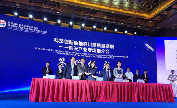 5月12日,第四届丝博会期间,由铜川市委、市政府主办的科技创新助推铜川高质量发展—航天产业专场推介会在西安举行。陕西省人大常委会副主任、省总工会主席郭大为,省人大常委会副秘书长戴毅力,省科技厅副厅长兰新哲;市委书记杨长亚,市人大常委会主任张建军,市政协主席张惠荣,副市长刘西林,市政府党组成员姜学武等出席。我校副校长李鹏飞应邀出席会议并签署共建“陕西(铜川)科技创新产业技术研究院”协议,科技成果转化...