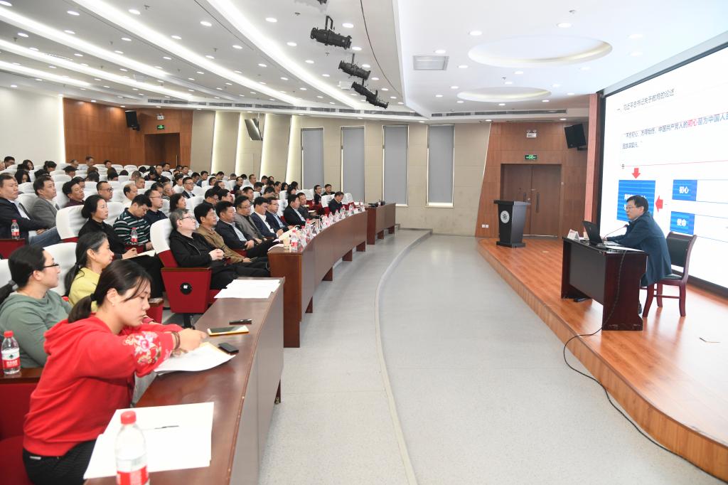 5月5日,我校在临潼校区图书馆一楼报告厅召开党委理论学习中心组(扩大)学习会。会议邀请西北工业大学教学研究与教师发展中心主任李辉做了主题为“习近平新时代教育论述与教育现代化2035”的学习报告;特别安排了我校四名2018年出国、出境研修学习人员代表在大会上做成果交流与分享。校党委理论学习中心组成员,副处级以上干部,人事处、教务处、高等教育与质量评估研究中心、国际处全体人员参加了会议。大会由校党委副书记朱...