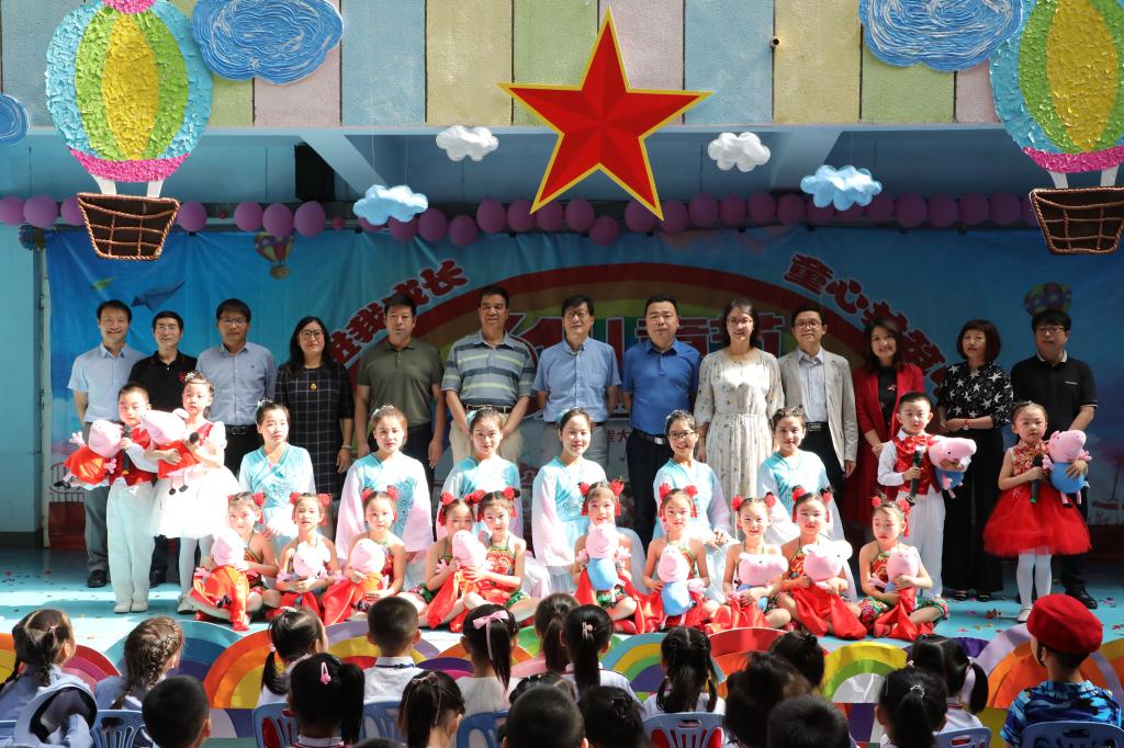 5月31日,在“六一”儿童节到来之际,我校幼儿园以“祖国前进我成长 童心共筑中国梦”为主题举办六一儿童节文艺汇演。校党委书记刘江南、校党委副书记赵小峰、朱君强、副校长朱永民、校关工委副主任张乐善、宋永成及党政办、校工会、后勤处、离退办等部门主要负责人来到幼儿园,为全体小朋友们带来节日的祝福,并对坚守在幼儿园教育、管理、服务一线的教职员工致以深切的问候。伴着花的芬芳,搭着歌的节拍,穿着节日的盛装,踏...