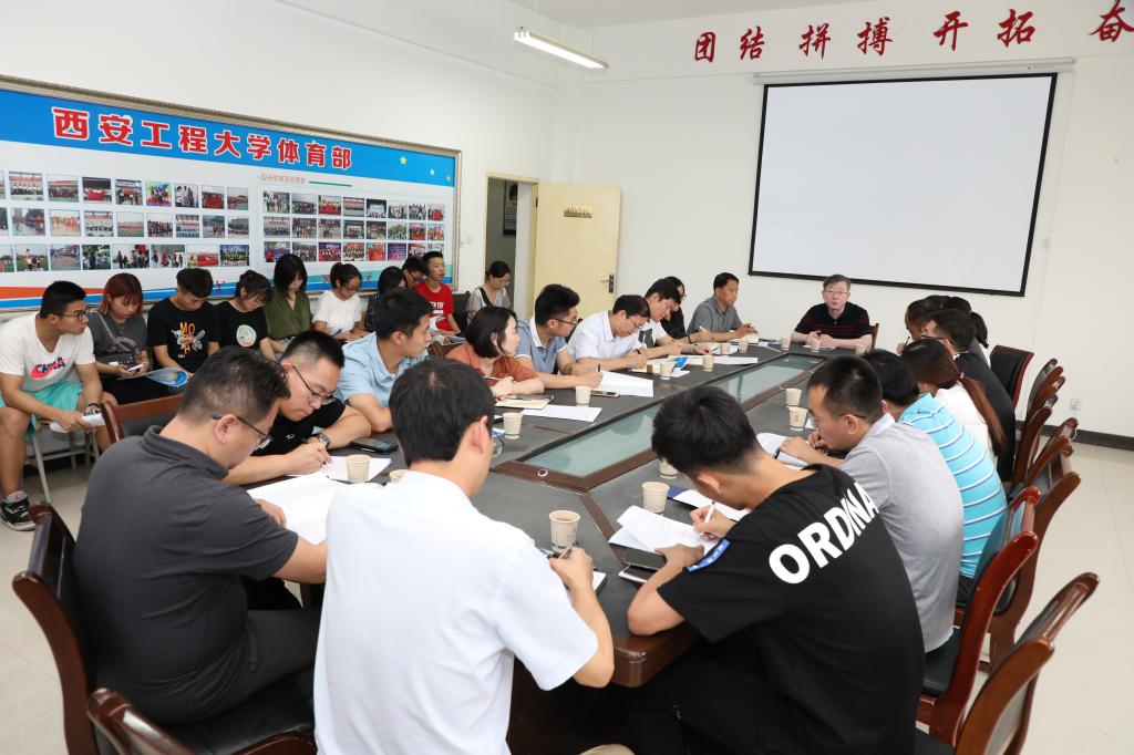 6月18日下午4时,在临潼校区体育部会议室召开了我校2019年游泳比赛工作部署会,校体育运动委员会主任、副校长戴鸿,学校党政办、学生部(处)、宣传部、校工会、保卫处、后勤处、校医院、校团委等相关部门负责人,各教学单位副书记或学生主管、学院游泳比赛领队及部分学生共计30余人参加了会议。会议由戴鸿主持。会上,薛海红就《关于成立西安工程大学2019年游泳比赛组委会及工作组的通知》进行了详细的说明和解读,对比赛组委...