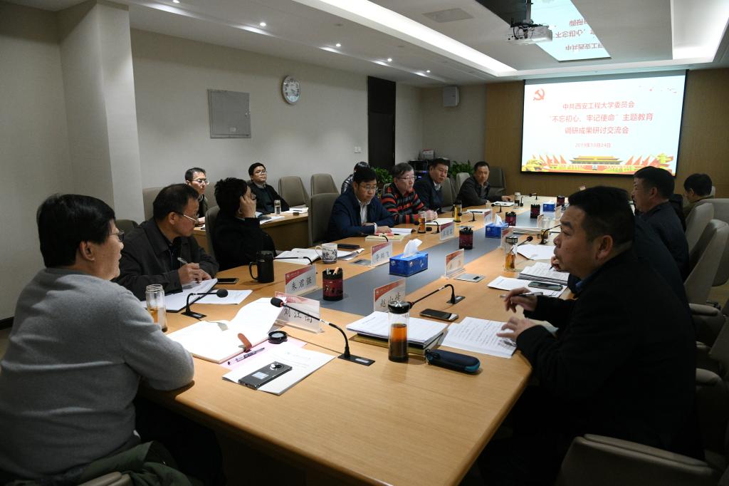 10月24日,西安工程大学在临潼校区第三会议室召开“不忘初心、牢记使命”主题教育调研成果研讨交流会。分管学校学科建设、人才队伍建设、后勤服务工作的校领导汇报了在学校“不忘初心、牢记使命”主题教育中,在各自分管领域工作的调研成果和工作思考,重点就工作现状、存在问题、发展思路、改进举措等进行了剖析。校党委书记刘江南主持会议并就三项工作的改进和发展提出了指导意见,并表示:问题是时代的呼声,也是工作的推进...