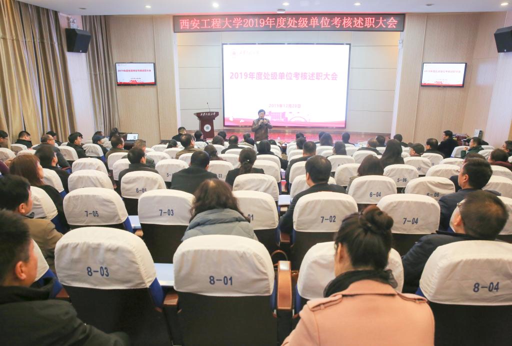 2019年12月27日至28日,我校在金花校区西纺报告厅召开处级单位2019年度考核述职大会。校领导、党委委员、学术委员会委员、校务督查组专家、机关处室(部门)负责人、各教学单位党政负责人等80余人参加会议。校党委副书记赵小峰主持会议。会上,我校48个部门、单位的主要负责人依次上台进行汇报。述职汇报分为教学单位、党群部门、业务单位、行政部门四个序列进行,各部门、各单位主要负责人对标2019年学校党政工作要点、年度绩...