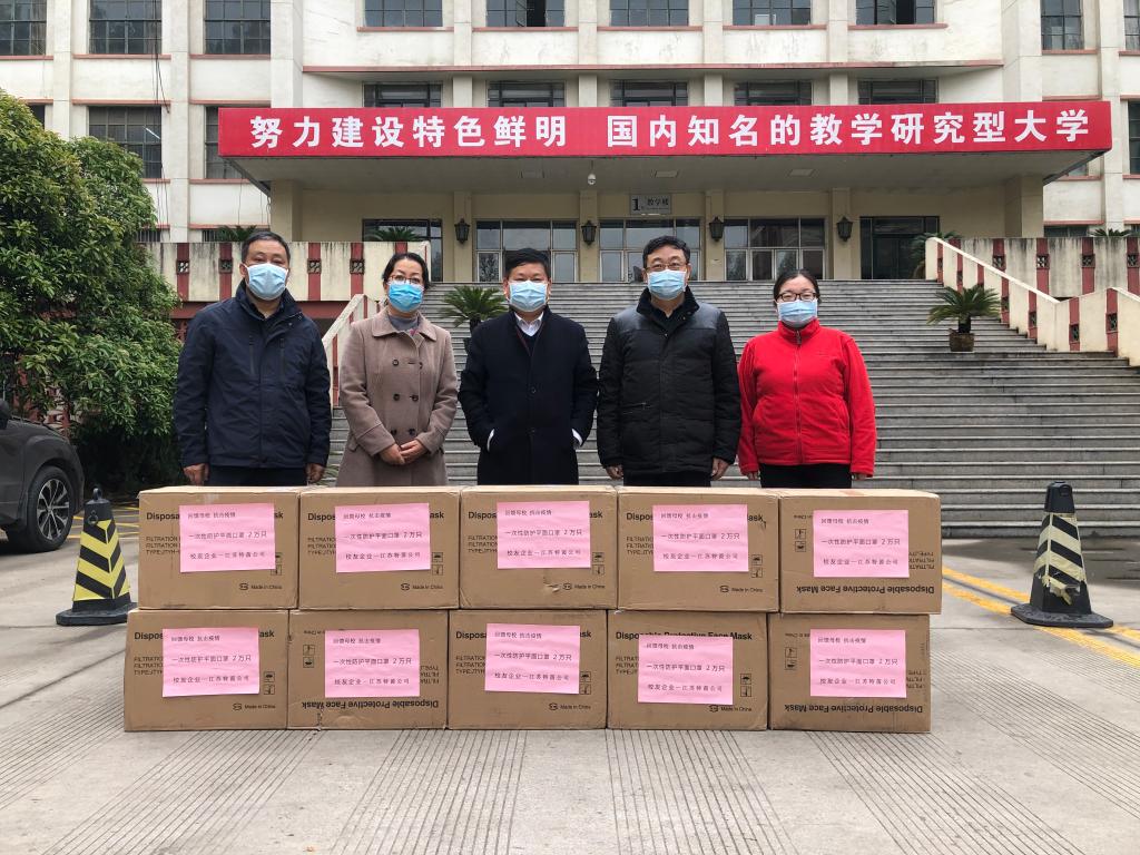 在得知母校正在加紧进行疫情防控物资储备,尽快恢复正常教学秩序,全力以赴保障师生员工生命安全和身体健康之际,我校外贸88级校友、江苏特茵公司董事长蒋谊耐决定由他的企业再次向母校馈送一批防护口罩,为母校恢复正常教学秩序提供支持。江苏特茵公司本次向学校馈送一次性防护平面口罩2万只。4月3日上午,这批物资到达学校金花校区北门口,我校党委书记、疫情防控工作领导小组组长马万清,副校长、疫情防控工作领导小组副组长...