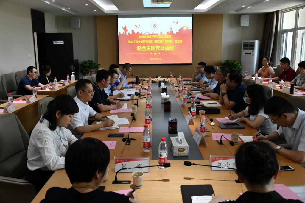 2020年6月24日下午,陕西省教育厅研究生处党支部与我校研究生院(党委研究生工作部、学科建设办公室)党支部在我校临潼校区联合开展了主题党日活动。陕西省人民政府学位委员会秘书长袁宁、陕西省教育厅研究生处处长张和平一行和我校校长高岭、党委副书记赵小峰、副校长王进富和双方党支部全体党员参加了此次活动。联合党日活动主题为“以习近平总书记来陕考察重要讲话为统领,学习‘两会’精神,承续立德树人使命”,分为党支部...
