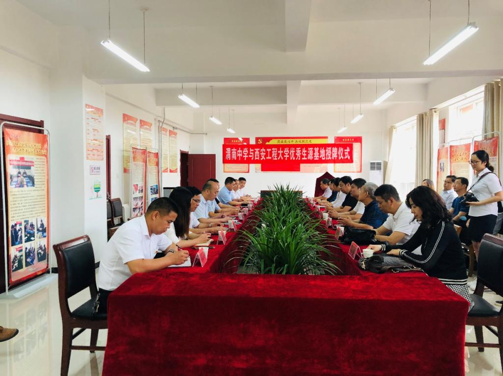 2020年7月24日上午,西安工程大学在陕西省渭南市渭南中学举行“优秀生源基地”签约挂牌仪式。渭南市教育考试中心主任张炜、副主任姚发荣,渭南市经开区党工委委员、管委会副主任郭青山,渭南中学党总支书记、校长马根福,我校副校长王进富,招生就业处处长张冬梅,服装学院院长吕钊、党委书记李筱胜,渭南地区中学招生宣传联络员及渭南中学全体校委会成员出席了仪式。本次仪式由渭南中学副校长屈国旺主持。渭南中学校长马根福代...