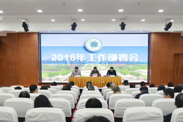 2018年3月22日上午,我校在临潼校区召开2018年工作部署会。校党委书记刘江南作重要讲话,校长高岭部署2018年重点工作。校领导朱君强、李鹏飞、樊增禄、朱永民、黄新波、田靖鹏,校党委委员、纪委委员、学术委员会委员、工会委员、正高职称专业技术人员、副处以上干部、各民主党派负责人、校务督察组成员参加会议。会议由校党委副书记赵小峰主持。