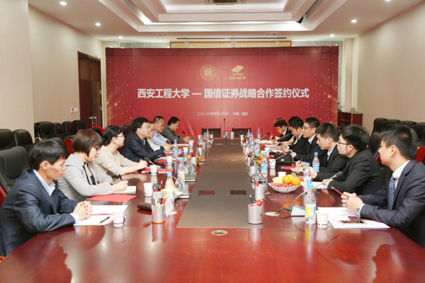 2018年4月19日,国信证券陕西分公司总经理田健湘、经纪事业部交易量化团队负责人王燕华、副总经理郭杨、机构业务部经理陶明、经纪事业部交易量化团队陈俊杰及相关工作人员一行十人来我校进行战略合作会谈。