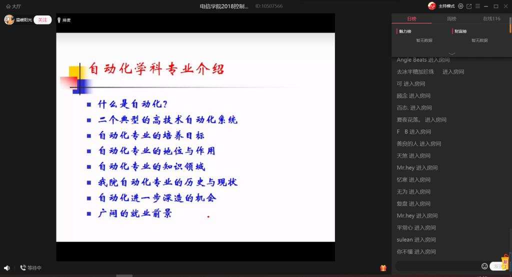 会上,温宗周首先从“什么是自动化”这个问题展开介绍,向大家具体讲解了两个典型的高技术自动化系统:“嫦娥系列”卫星系统以及拟人型机器人。嫦娥四号实现了人类探测器在月球背面首次软着陆,其中涉及到的问题多而复杂,但都与我们的专业密不可分。这不仅是国家的成功,更是这个专业的骄傲。接着,温宗周从自动化专业的培养目标,地位,作用以及知识领域等方面向同学们进行了详细的讲解,让同学们充分了解了专业内涵,以及接下来学习的方向核心。