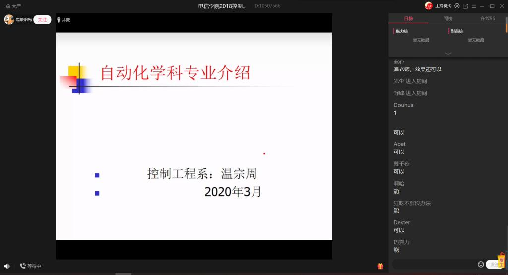为确保“停课不停学”,坚决贯彻落实省委教育工委,省教育厅工作部署,全面落实我校在疫情防控期间的教学安排部署,充分发挥三全育人导师团的作用,使控制系学生在疫情期间能够深刻了解和认识自己的专业内涵。3月5日,电子信息学院2018级控制系导师团通过QQ群课堂进行了线上专业介绍课,本次课程由控制系导师团导师温宗周主讲,18级全体控制系学生及控制系导师团导师参加。