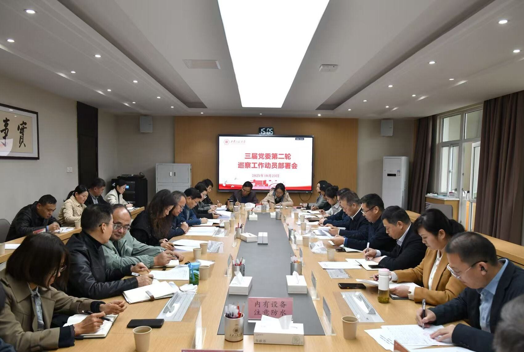 10月23日,我校召开第三届党委第二轮巡察工作动员部署会。校党委书记、巡察工作领导小组组长张志昌,校党委副书记、纪委书记、监察专员,校党委巡察工作领导小组副组长辛永昌出席会议。学校党委巡察工作领导小组成员单位负责人、党委巡察组成员,纺织科学与工程学院、机电工程学院、新媒体艺术学院、马克思主义学院、材料工程学院、体育部等被巡察单位的党政负责人参会。会议由张志昌主持。