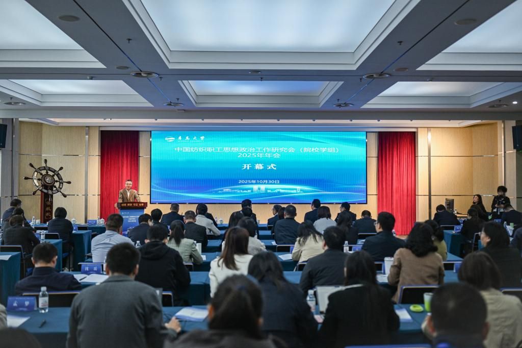 10月30日,中国纺织职工思想政治工作研究会(院校学组)2025年年会在青岛大学举行。中国纺织职工思想政治工作研究会秘书长郑国峰,中国纺织职工思想政治工作研究会(院校学组)会长、北京服装学院党委副书记李伟书出席开幕式并讲话,全国17所纺织高校近百名代表参加会议。我校党委副书记殷永建带队,党委宣传部、教师工作部(人事处)、学工部、研工部、校团委、马克思主义学院、纺织科学与工程学院等单位负责人参会。