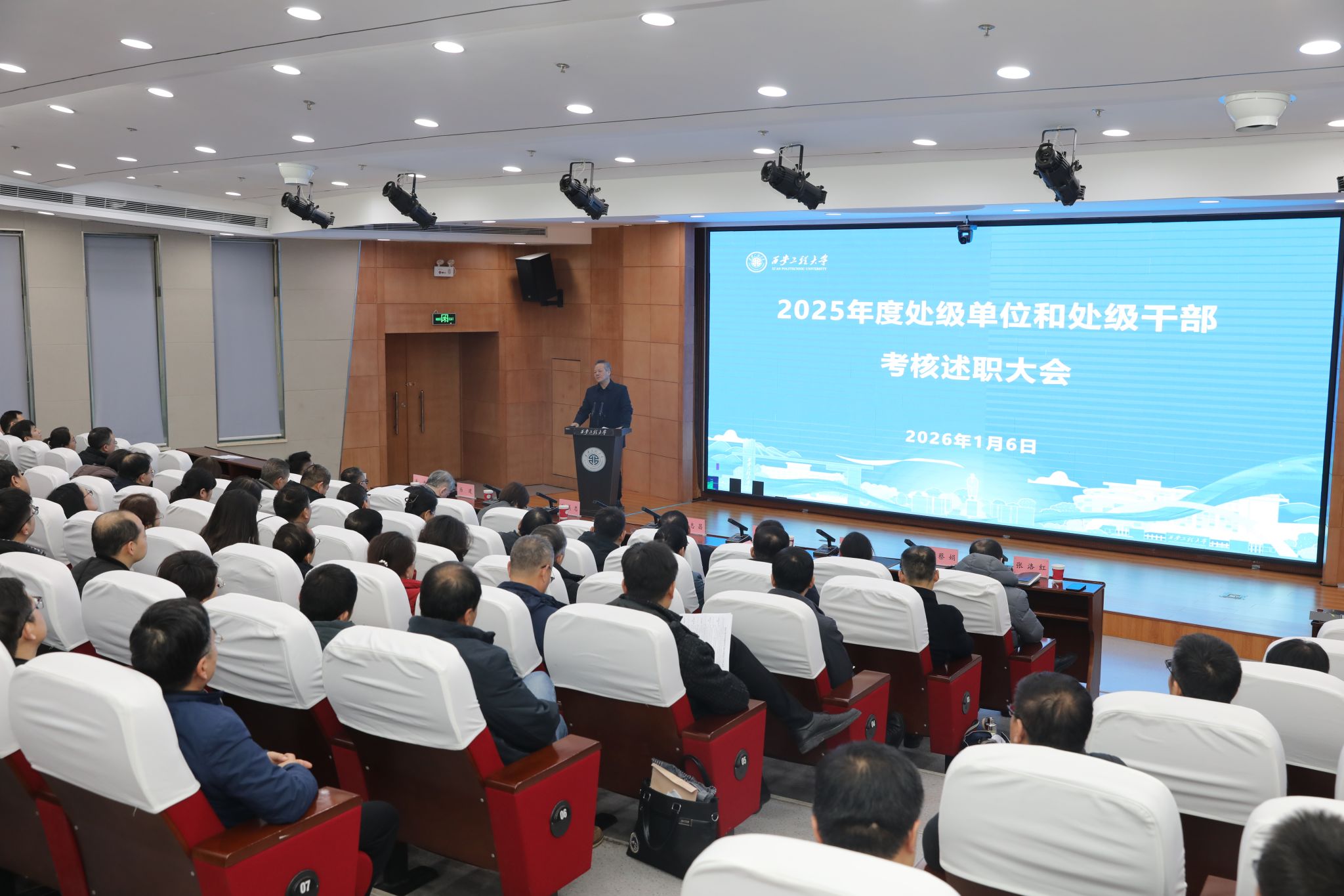 1月6日,我校在临潼校区召开2025年度处级单位和处级干部考核述职大会。校党委书记张志昌出席会议并作总结讲话。全体校领导,校属各单位负责人、教代会代表、人大代表、政协委员、党外人士代表等100余人参加会议。会议由校党委副书记井浩主持。