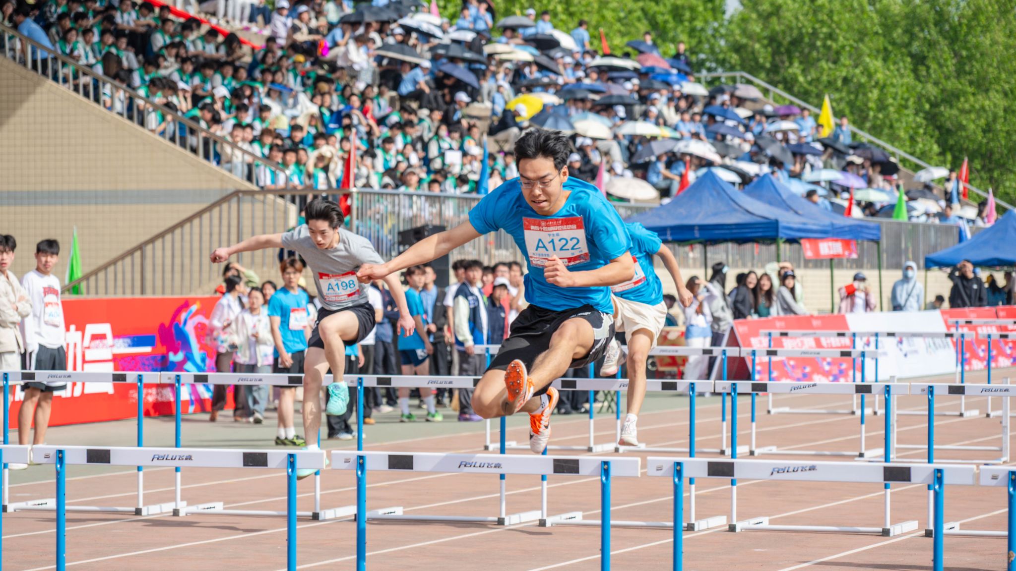 张志昌宣布比赛开始,彩烟砰然升空的同时,学生男子100米预赛发令枪响,健儿们如离弦之箭,在跑道上奋力冲刺。运动场上,运动员们蓄力、腾跃,挑战极限。全体运动员顽强拼搏,尊重规则;裁判员严肃认真,公正执裁;工作人员恪尽职守,保障有力;观众文明观赛,热情助威,共同营造了积极向上、和谐文明的竞赛氛围。