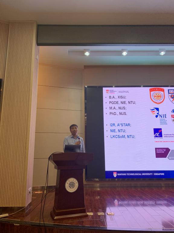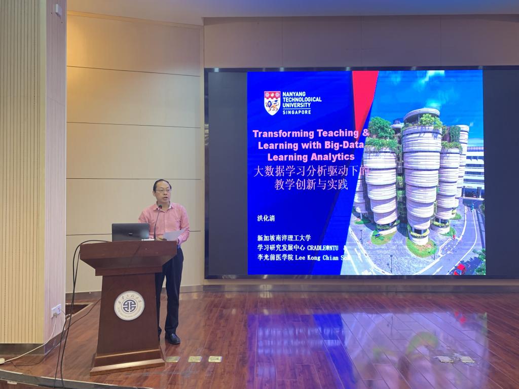 洪博士在金花校区西纺报告厅做了题为《大数据学习分析驱动下的教学改革 Transforming Teaching and Learning with Big Data Learning Analytics》的学术讲座。洪博士主要结合本人过去二十年在教育研究和移动互联网教学方面的实践经验,介绍新加坡南洋理工大学的新型学习生态系统的创建与应用,探讨如何把信息技术与教育教学过程紧密结合起来,重新构建学习生态系统,在大数据学习分析的基础上建立真正以学习者为中心的翻转教学新模式,促使教和学的教育范式转变,开展小组导向式、启发式、探究式、讨论式、参与式教学,全面助推培养高素质技能型人才。将外语教学与多种领域、多种专业相结合,开创了自己独特、有效的教学模式。特别是教学中高科技技术的采用,让与会的教师及学生开拓了视野,增长了知识。最后胡伟华教授对于本次讲座作了总结。