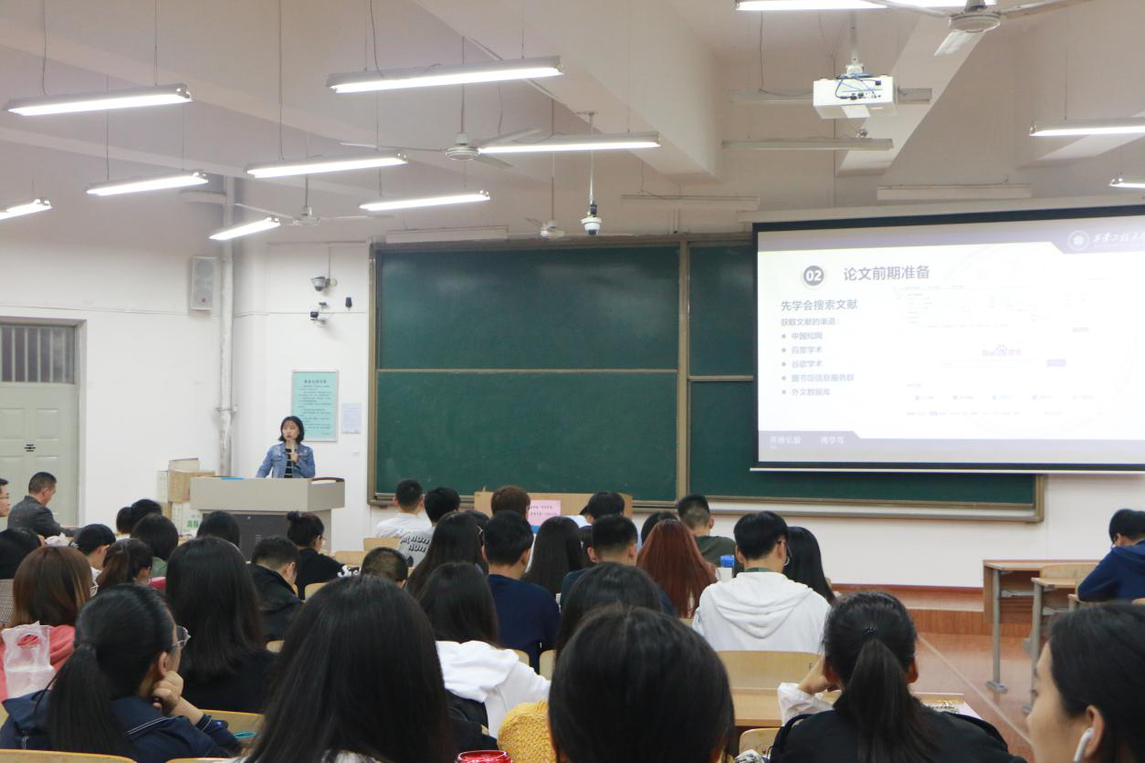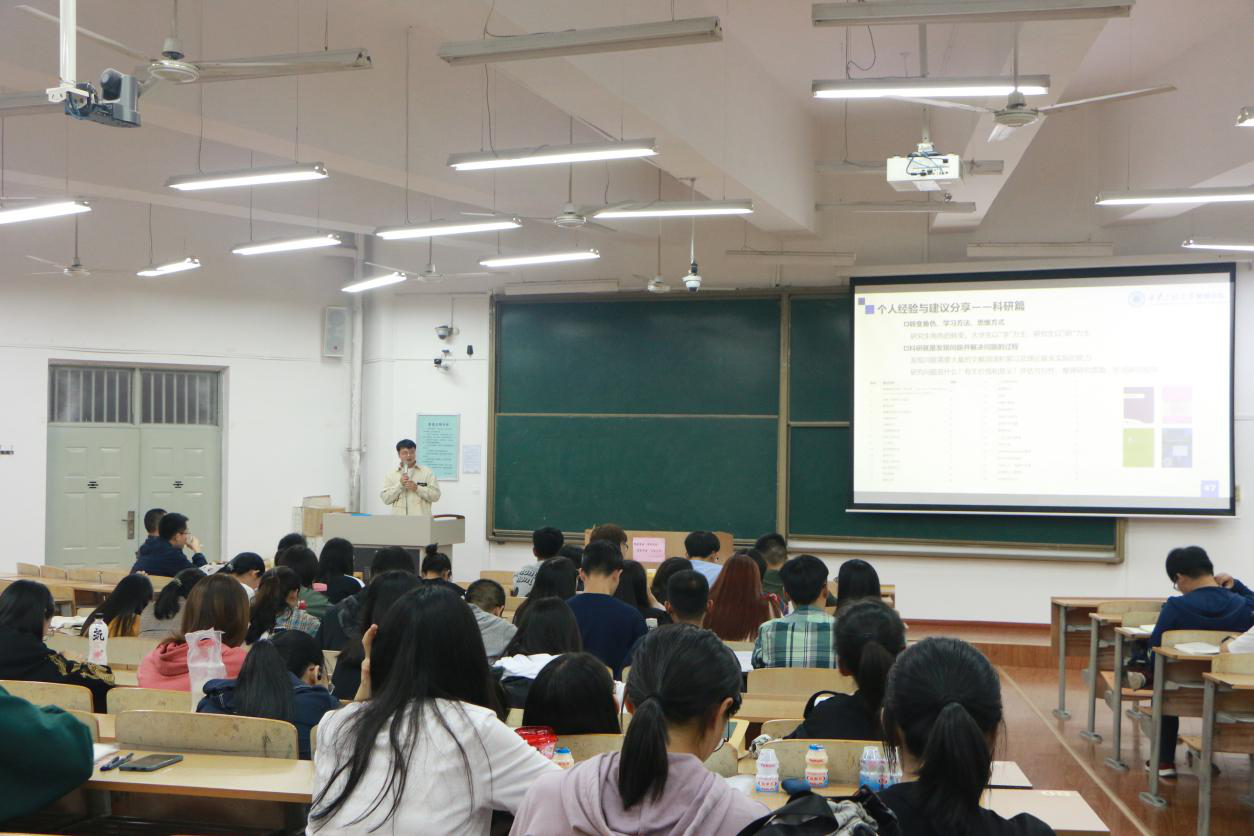 此次活动邀请了四位18级优秀学长学姐分享研究生科研学习经验。管理科学与工程专业研究生王玉玨以“领悟论文的奥秘”为题,重点讲解了在论文写作中如何寻找创新点以及查找、阅读文献的方法要领,并推荐大量实用科研软件。工商管理专业研究生陈明月以学术论文撰写和学生工作两方面为主线,分享了阅读文献的前期准备工作、论文选题以及常用的实证研究软件和投稿注意事项。同时介绍了平衡科研写作和学生工作的方法,叮嘱新生要利用好课余时间,不荒废研究生阶段的时光。技术经济及管理专业黄涛分享了自己在研究生学习生活中的四点总结经验。第一,要转变角色、学习方法、思维方式,从以“学”为主的大学生转为以“研”为主的研究生。第二,要认识到科研是发现问题并解决问题的过程。第三,要甘愿坐冷板凳,塑造强大的内心,屡败屡战。第四,要多与他人交流,不仅多与导师、同门交流,也要多参加学术会议和科技竞赛,开阔眼界。信息管理与信息系统专业冯海强以学术论文写作、专业竞赛与研究生生活为主题,强调了选题、文献阅读、投稿期刊需要注意的事项;并以中国研究生数学建模竞赛为实例,向大家讲述了赛前准备到最后撰写报告的过程;最后,提醒大家在科研生活中要调整好心态,及时解决遇到的问题。