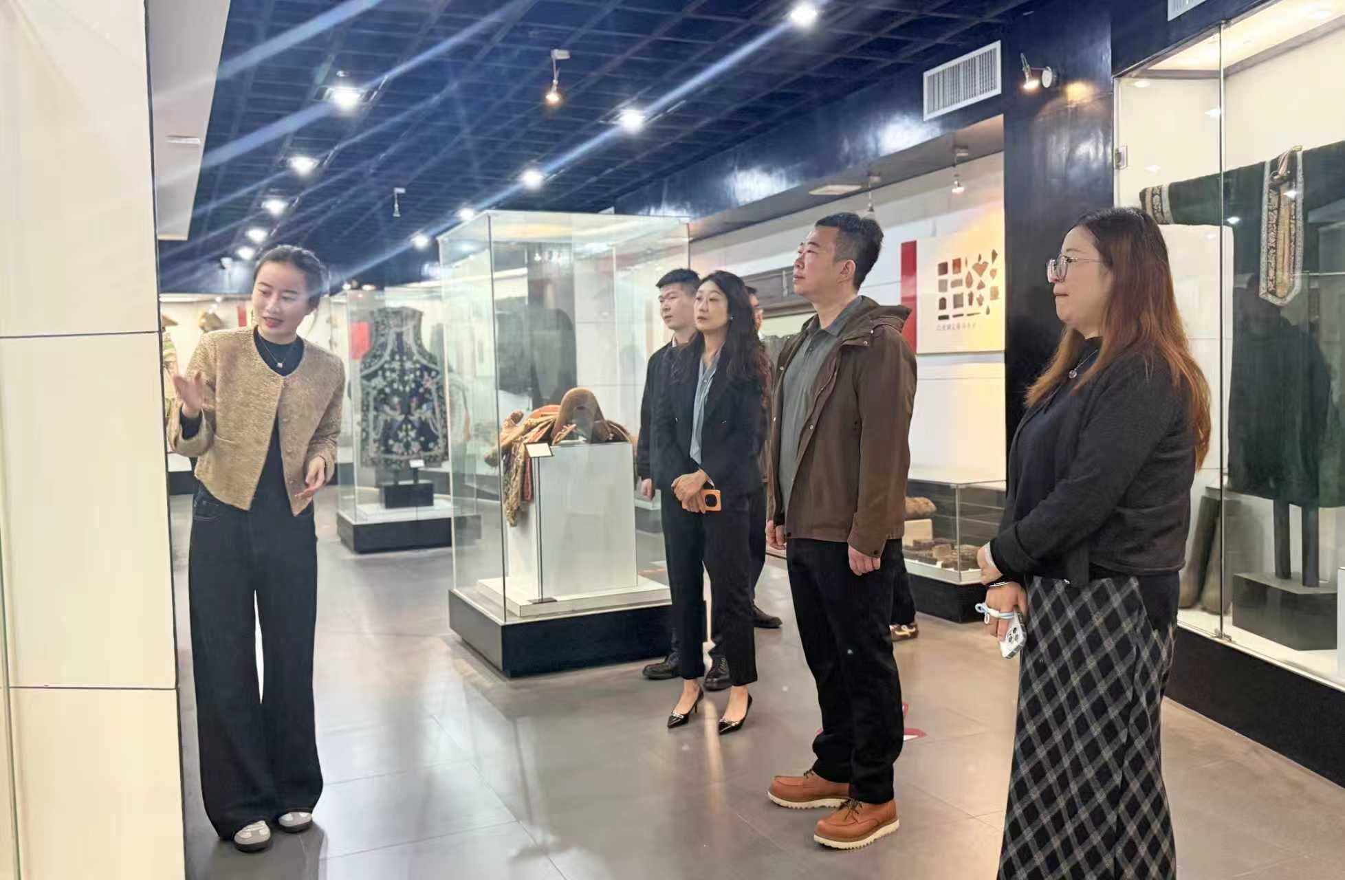 赵鹏一行先后参观了我校校史馆、纺织科普馆、西部民族民间服饰馆及现代服饰馆,重点考察了我馆纺织类展品的收藏与展陈情况。