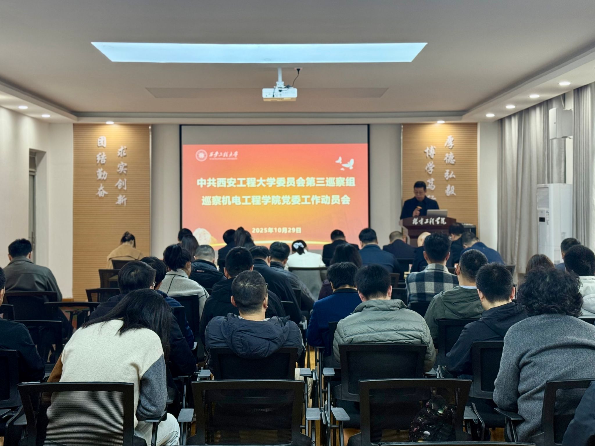 10月29日,党委第三巡察组召开巡察机电工程学院党委工作动员会,联系学院校领导、校党委委员、副校长朱永民出席会议并讲话。