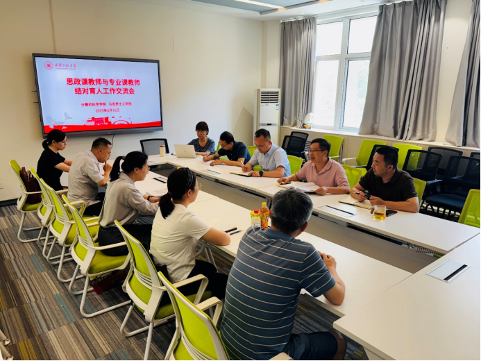 6月16日,计算机科学学院与马克思主义学院联合举办思政课与专业课教师结对育人研讨会,特邀马克思主义学院刘敏、牛佳欣两位思政骨干教师作专题分享,共同探讨课程思政与专业教学融合路径。计算机科学学院班子成员闫小兵、张凯兵、王蒙及学院课程思政骨干教师高晓娟、张晓滨等参会。