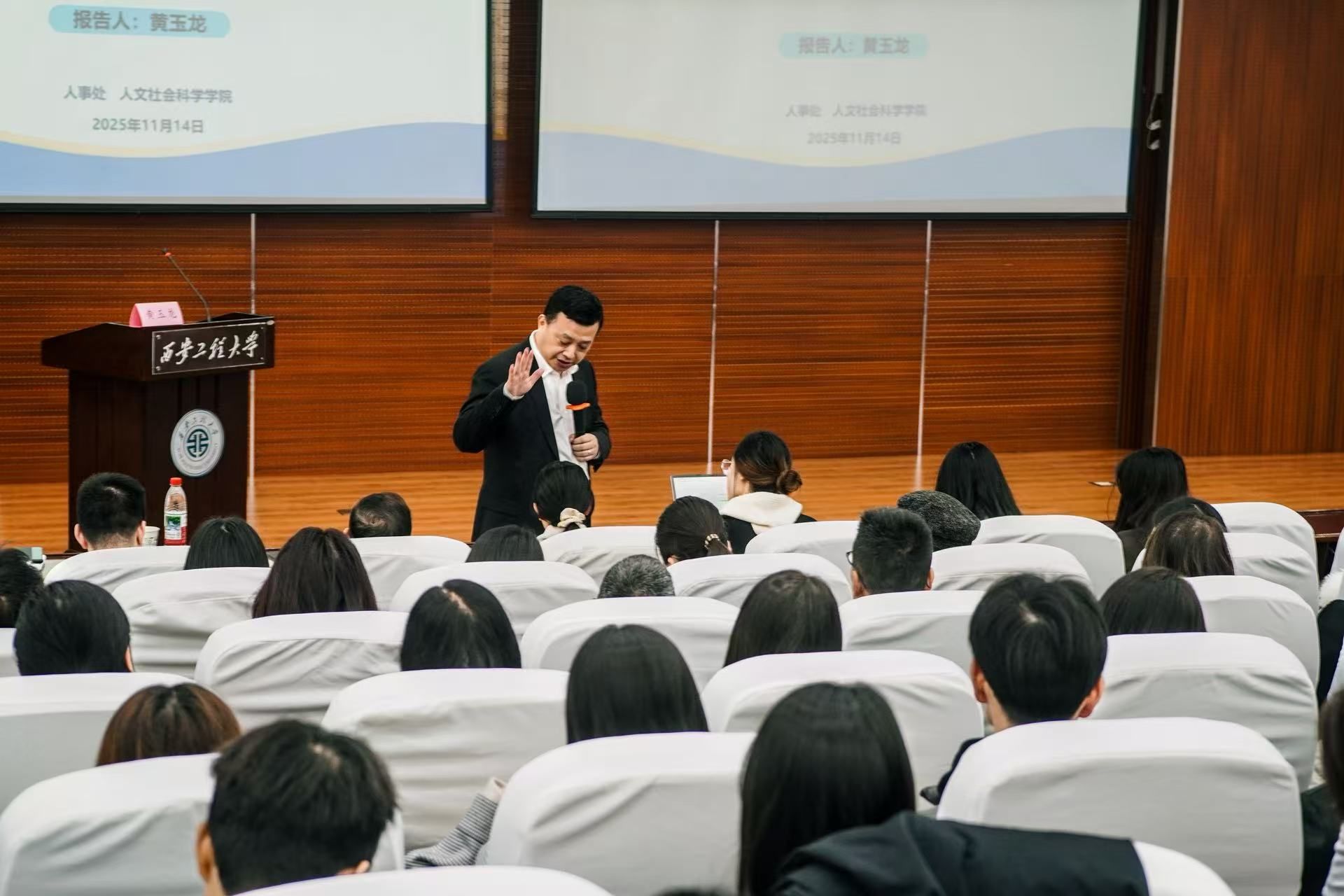 活动中,黄玉龙教授立足新时代国际传播格局,深入剖析了当前中国国际传播正面临的新形势、新挑战与新机遇。他指出,向世界讲好中国式现代化故事,构建更有力的国际传播体系,是时代赋予高校的重要使命。外语人、新传人、马哲人等相关学科人才需转变话语体系,锤炼“内知国情、外晓世界、融通中外”的综合素养,为实现中国文化“走出去”的传播效果,必须深入研究中国发展趋势与国际格局变化,精准把握目标受众的接受习惯。