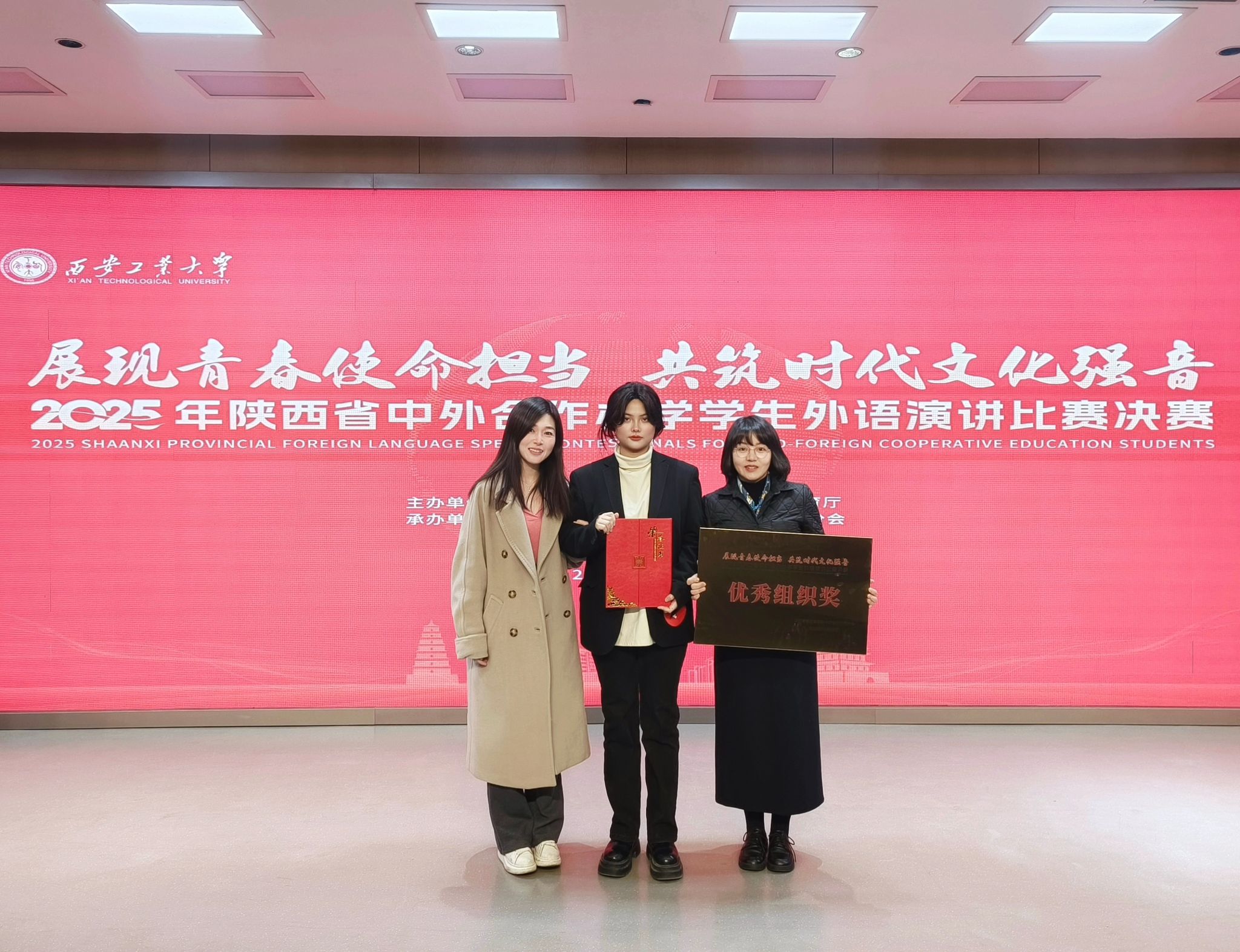11月25日,由省委教育工委、省教育厅主办的2025年陕西省中外合作办学学生外语演讲比赛落幕,我校中英合作办学项目学生熊思遥荣获三等奖,我校荣获优秀组织奖。