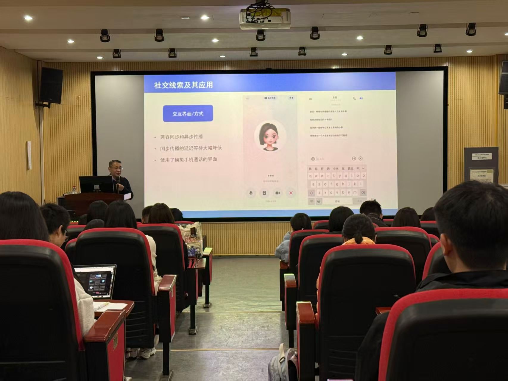 马锋教授聚焦于人机传播研究前沿,结合自身在该领域的深厚积累,作了题为“计算机作为社会行动者”的学术分享。他从“你会对AI说谢谢吗”这一生活化问题切入,系统梳理了从“人机交互”“计算机中介传播”到“人机传播”的范式演进,深入阐释了“计算机作为社会行动者”(CASA)理论的核心内涵与现实表现,并结合教育机器人、语音助手等案例,解析了人类如何在社会互动中赋予机器以“主体性”。整场报告逻辑清晰、层层递进,拓宽了师生对智能技术与社会行为关系的认知视野。