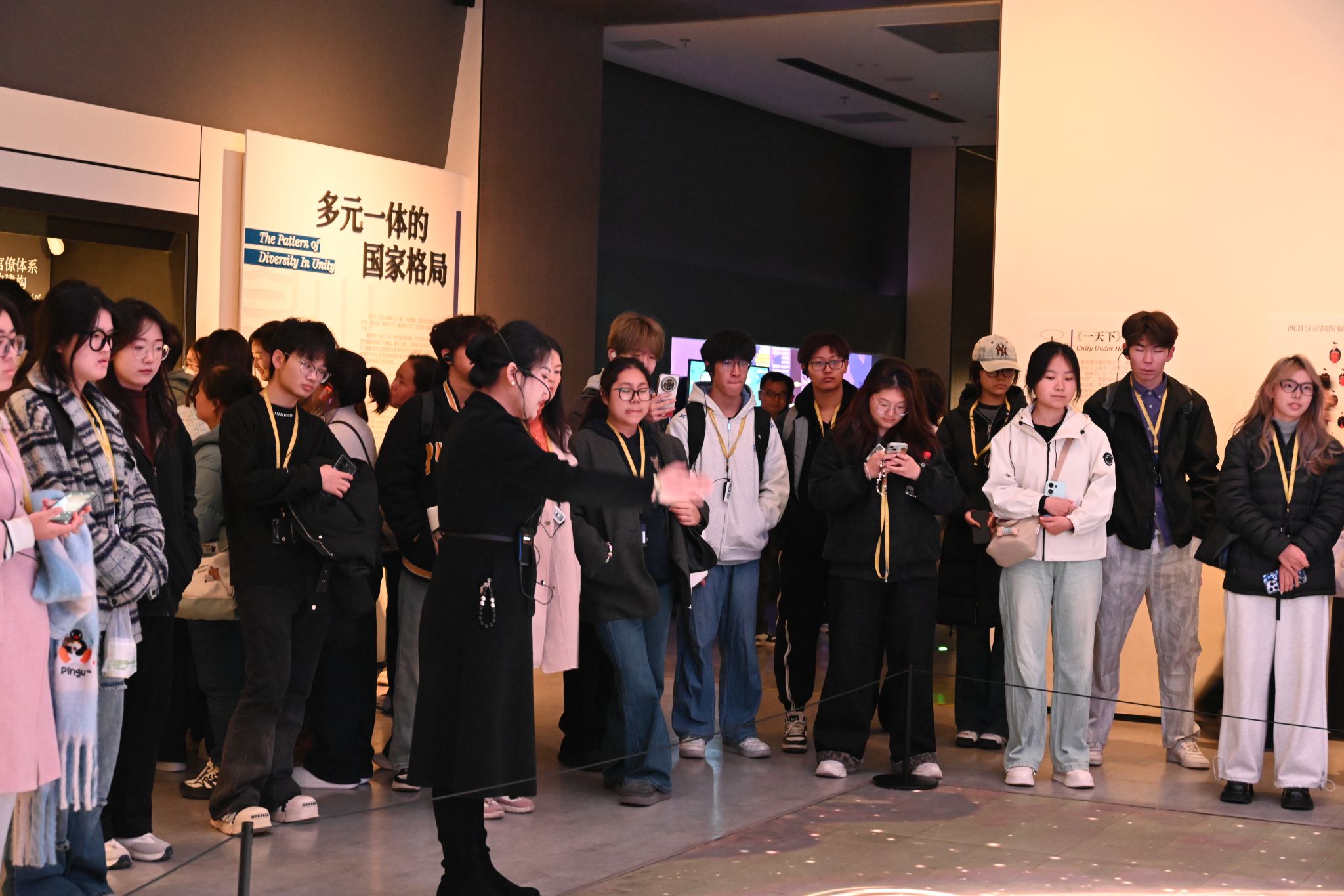参观过程中,大家一同驻足聆听讲解,不时结合展品背景与民族团结主题进行交流。来自不同民族的学生围绕文物中蕴含的文化融合元素展开热烈讨论,从秦汉服饰的形制演变到多民族文化的交流互鉴,从统一度量衡的历史意义到新时代民族团结的时代要求,思想的碰撞让中华民族共同体意识在潜移默化中根植于心。一位少数民族学生感慨道:“通过这次参观,我不仅领略了秦汉文明的博大精深,更深刻认识到各民族自古以来就是中华文明的共同创造者。”