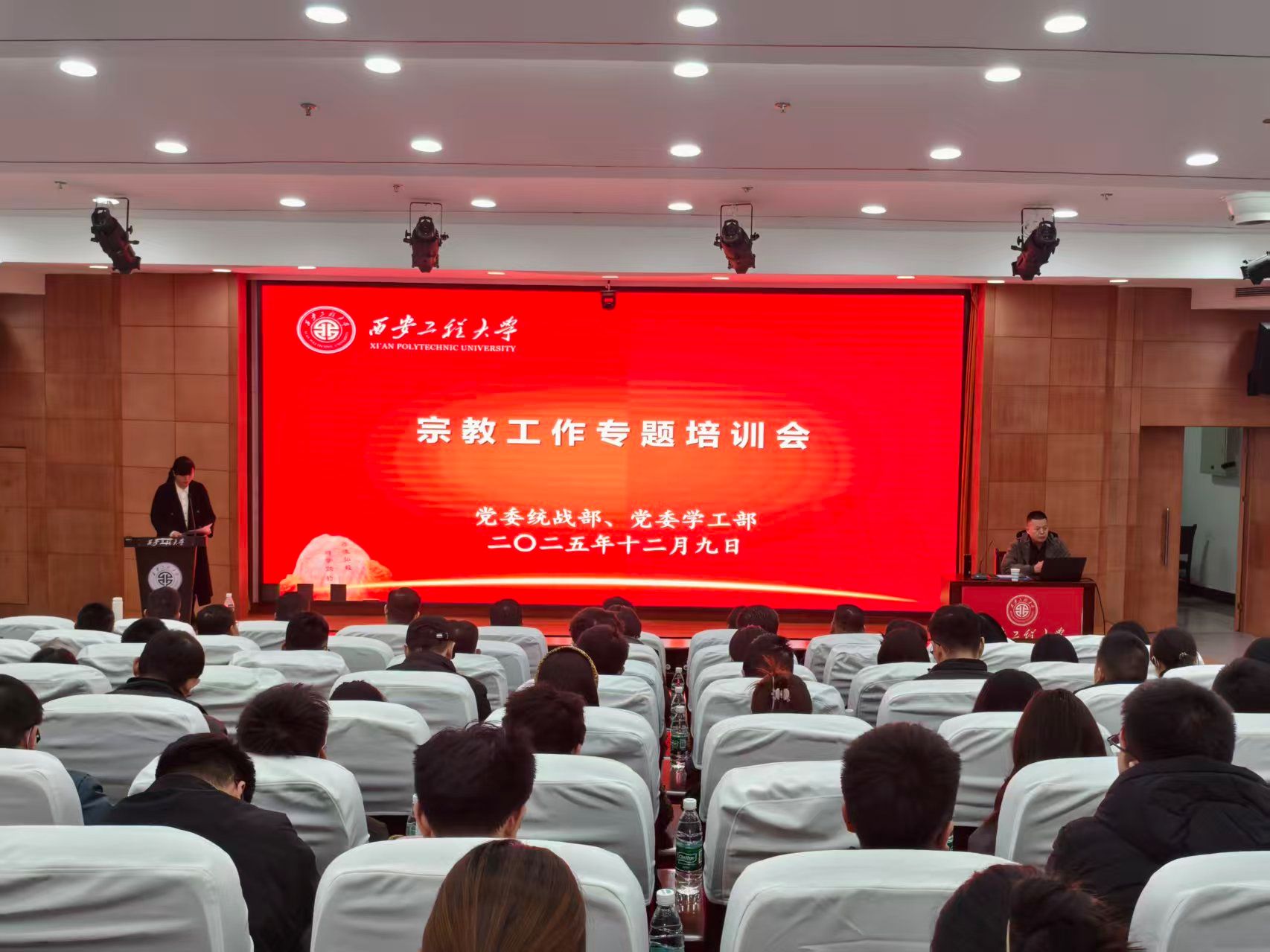 12月9日,由校党委统战部、学生工作部(处)联合主办的宗教工作专题培训会在临潼校区举行,本次培训会旨在深入学习贯彻习近平总书记关于宗教工作的重要论述,进一步提升我校做好宗教工作能力素质及业务水平。会议邀请西安市民族宗教事务委员会二级调研员张高亮作专题辅导报告。党委统战部部长张冬梅主持会议。