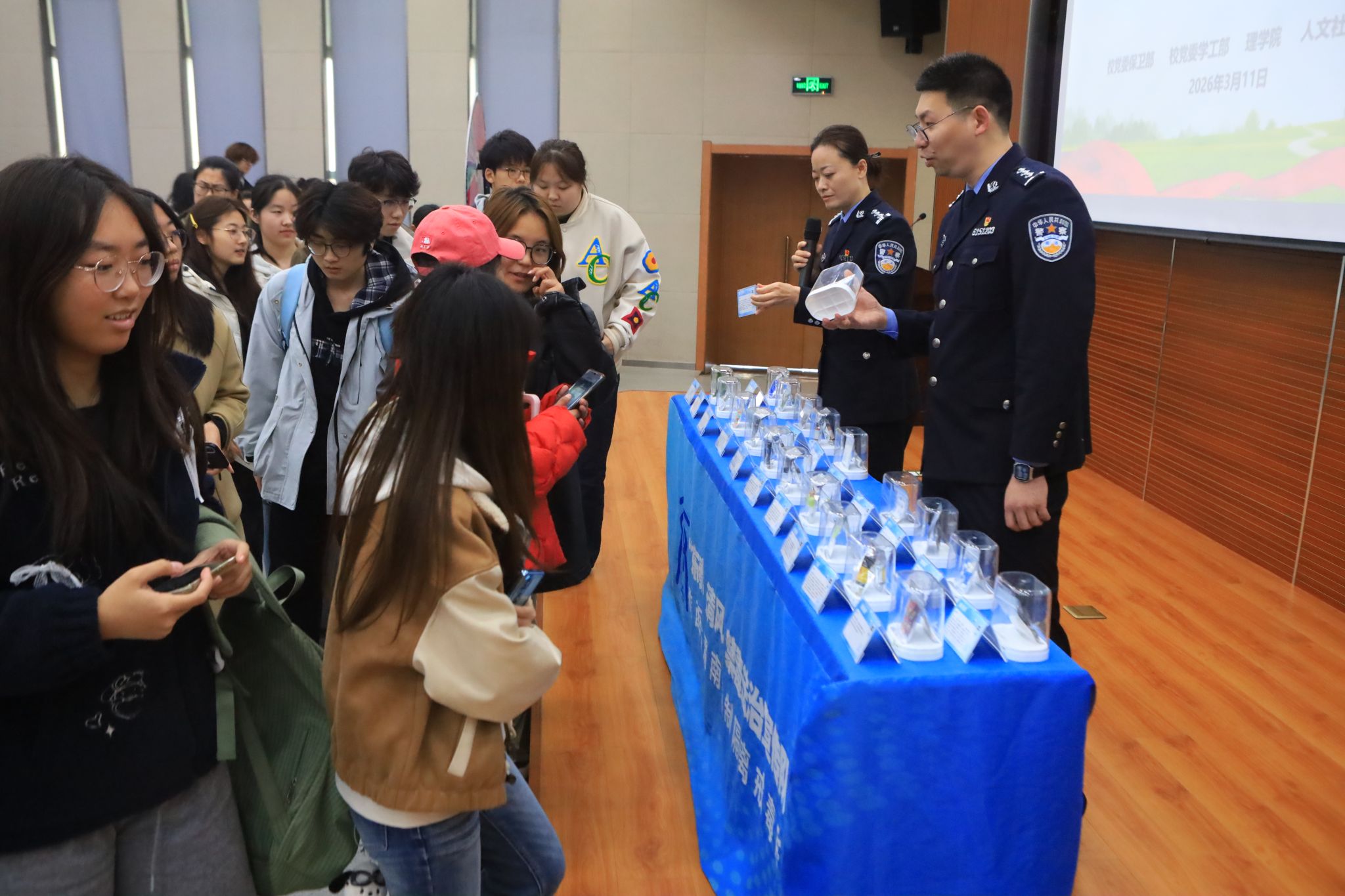 报告中,李亨达警官结合工作经验,围绕毒品定义与分类、当前毒情形势、新型毒品种类识别等内容,通过真实案例深入剖析了毒品带来的严重危害,系统讲解了预防的方式方法和举措。在现场设置的毒品模型展示区,同学们近距离观察各类毒品仿真模型,听取警官讲解毒品外观特征与伪装形式,进一步加深了对毒品危害的直观认识,提升了防范警惕性。