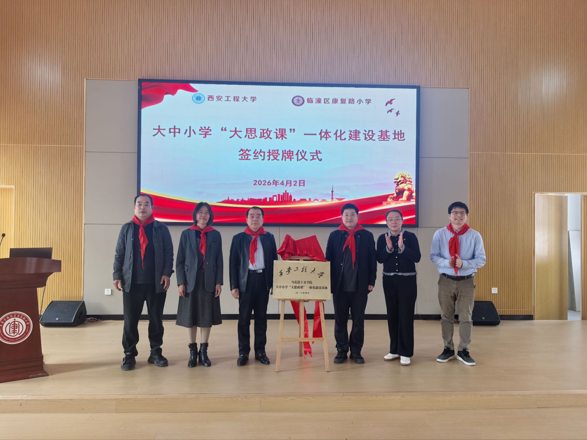 随后,双方代表签署合作协议,并共同为“大中小学‘大思政课’一体化建设基地”揭牌。宋剑秋表示,期待通过西安工程大学的教育资源,让小学思政课堂更有深度、更有温度,让孩子们在“行走的思政课”中厚植家国情怀,扣好人生第一粒扣子。