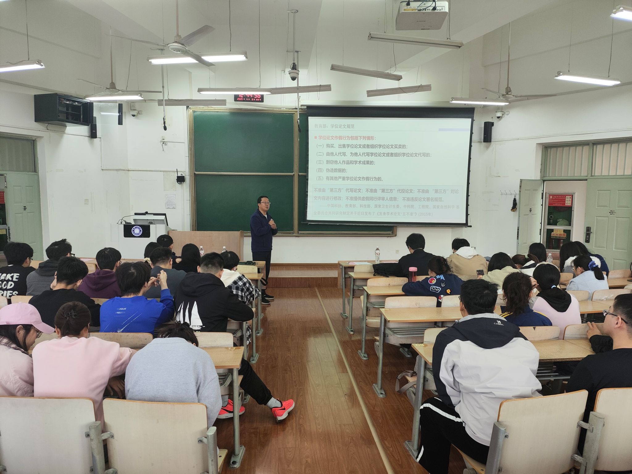张国青宣读了《理学院2026年研究生学术活动月工作安排》。冯进钤作了关于研究生学术道德规范的首场讲座。他深入剖析了学术不端行为的表现形式与严重危害,强调了恪守学术道德规范的重要意义。他表示,工具思维不能取代独立思考,AI无法替代研究者的原创探索,科研之路必须坚守独立思考、坚持原创探索,这是最基本的学术规范与学术道德。