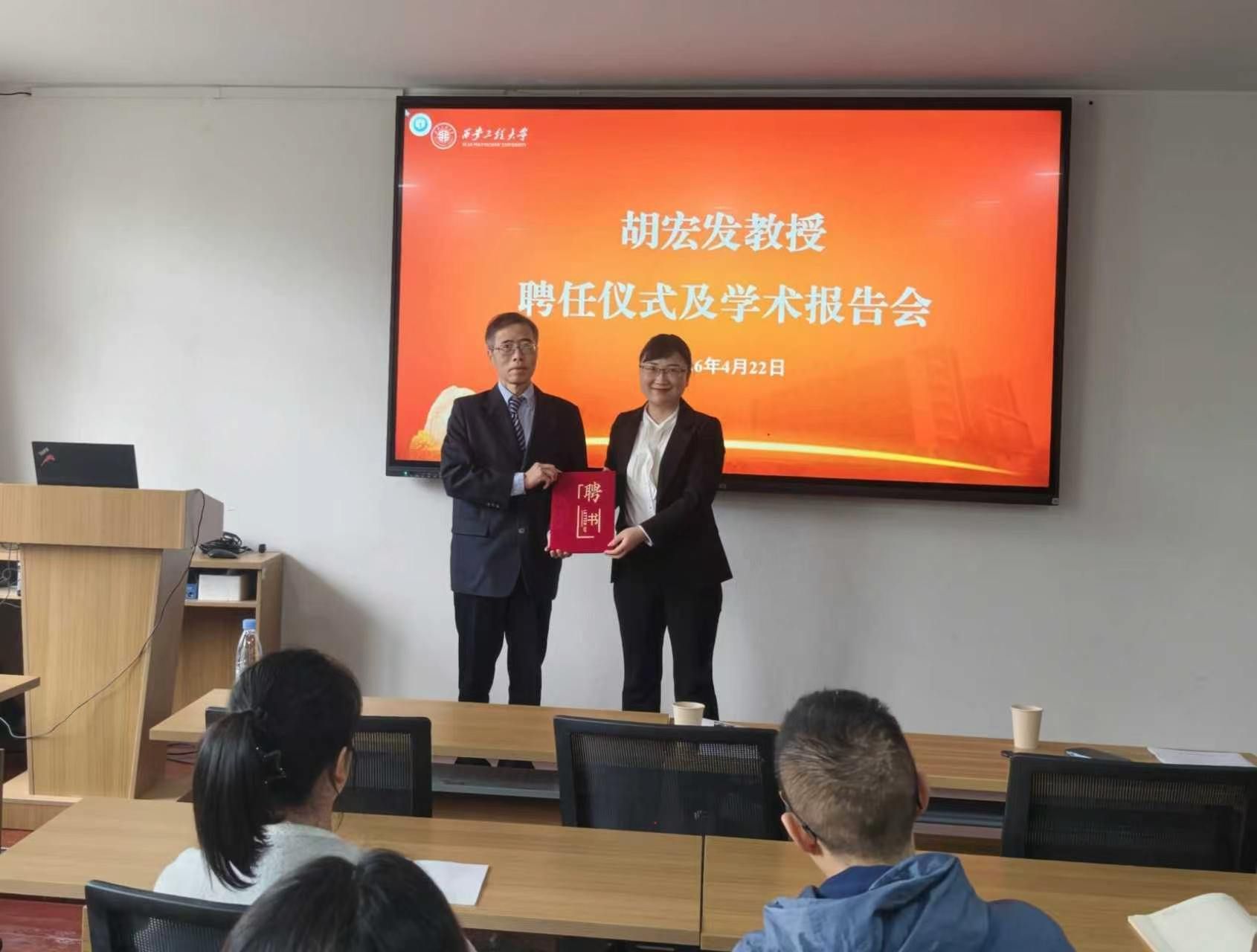 4月22日,材料工程学院在金花校区举行加拿大温莎大学胡宏发教授特聘教授聘任仪式,副校长夏蔡娟出席仪式。材料工程学院院长赵小惠主持聘任仪式,材料学院领导班子成员,教师代表及研究生参加活动。