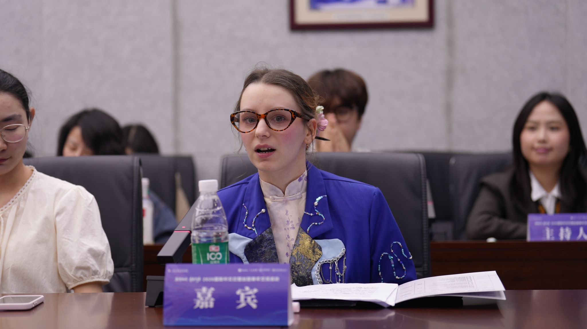 萨莎在“触摸非遗·感知中国:中华优秀传统文化体验对中文学习的促进作用”专题研讨中,作了题为《一针一线学中文:我的服装设计与非遗之旅》发言。她结合自身专业特点与在华学习生活经历,分享了将中文学习、服装设计与中华非遗文化相结合的心得体会。她谈到,在学习中文过程中,非遗刺绣、传统服饰纹样等中华优秀传统文化元素,为她理解汉字、提升语言能力、拓展设计思路等方面提供了生动载体。萨莎的讲述得到现场嘉宾和师生的热烈反响,充分展示了我校国际学生的综合素养与风采。
